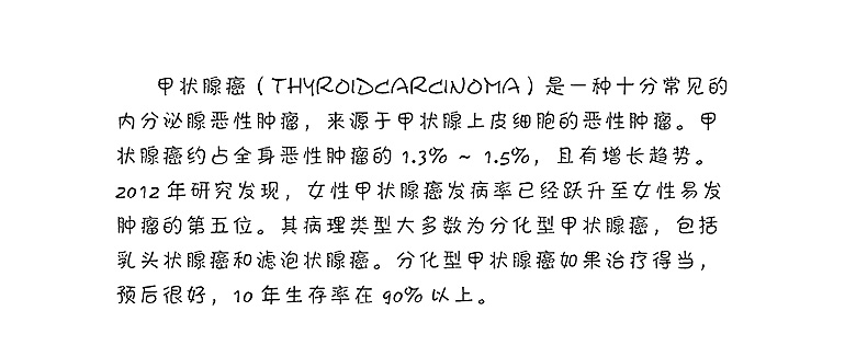 不幸中的万幸是未分化癌仅仅占甲状腺癌中的不足2%,发病率比较低,其他绝大部分甲状腺癌治疗效果都比较好,当然这是要建立在接受规范的诊治和复查随访的前提之下。